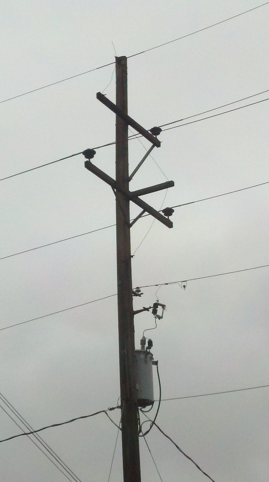 Notice the 3 primary fuses, aka, cutouts. These may be a clue to the utility company as to where the problem is.